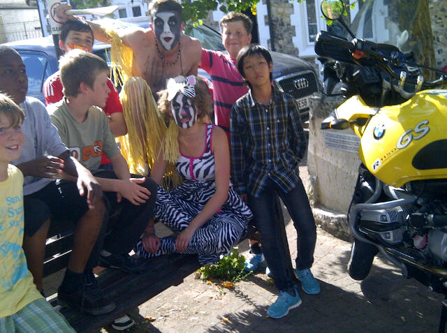 Each time the camp comes to the village of Beer, we play a game of invasion. Some of the leaders disguise themselves and hide around the village, and the campers have to find them. This year we saw bikers, zebra, tribes men, santa and lots more! We were also hunting for ducks.