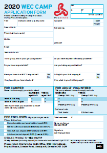 Complete the form and enclose a check payable to WEC Camps for the deposit or full fees, and post to: The Youth Office