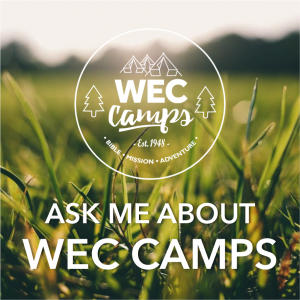 WEC Camps are a first-class camping holiday with Bible and missions teaching for young Christians. You can help make this happen by telling others about WEC Camps, and encouraging them to come along.
