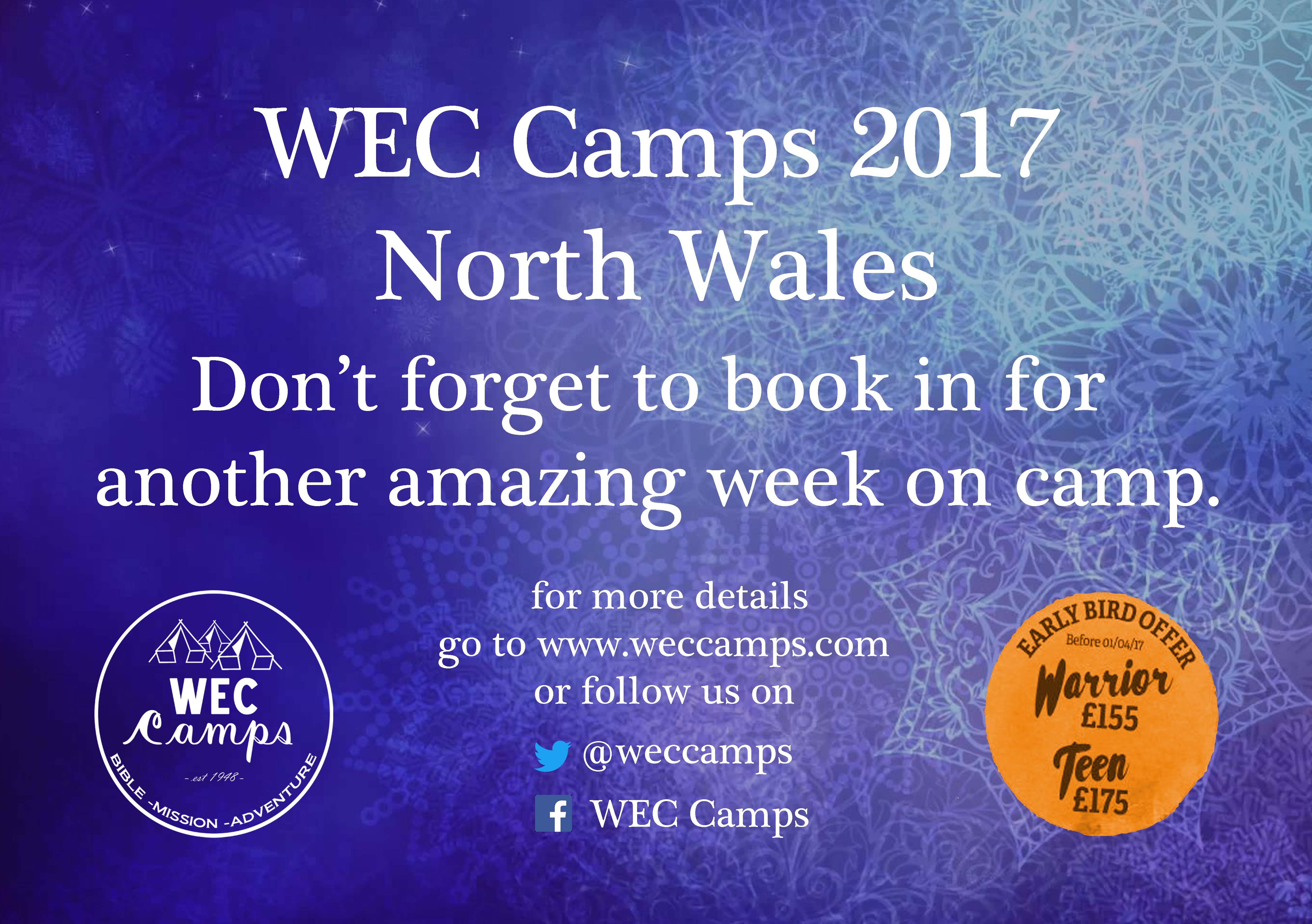 Posted on December 23, 2016 by JonHappy Christmas from WEC Camps! All the team from WEC Camps and the WEC Youth Office would like to wish you a happy Christmas and a Blessed new year.