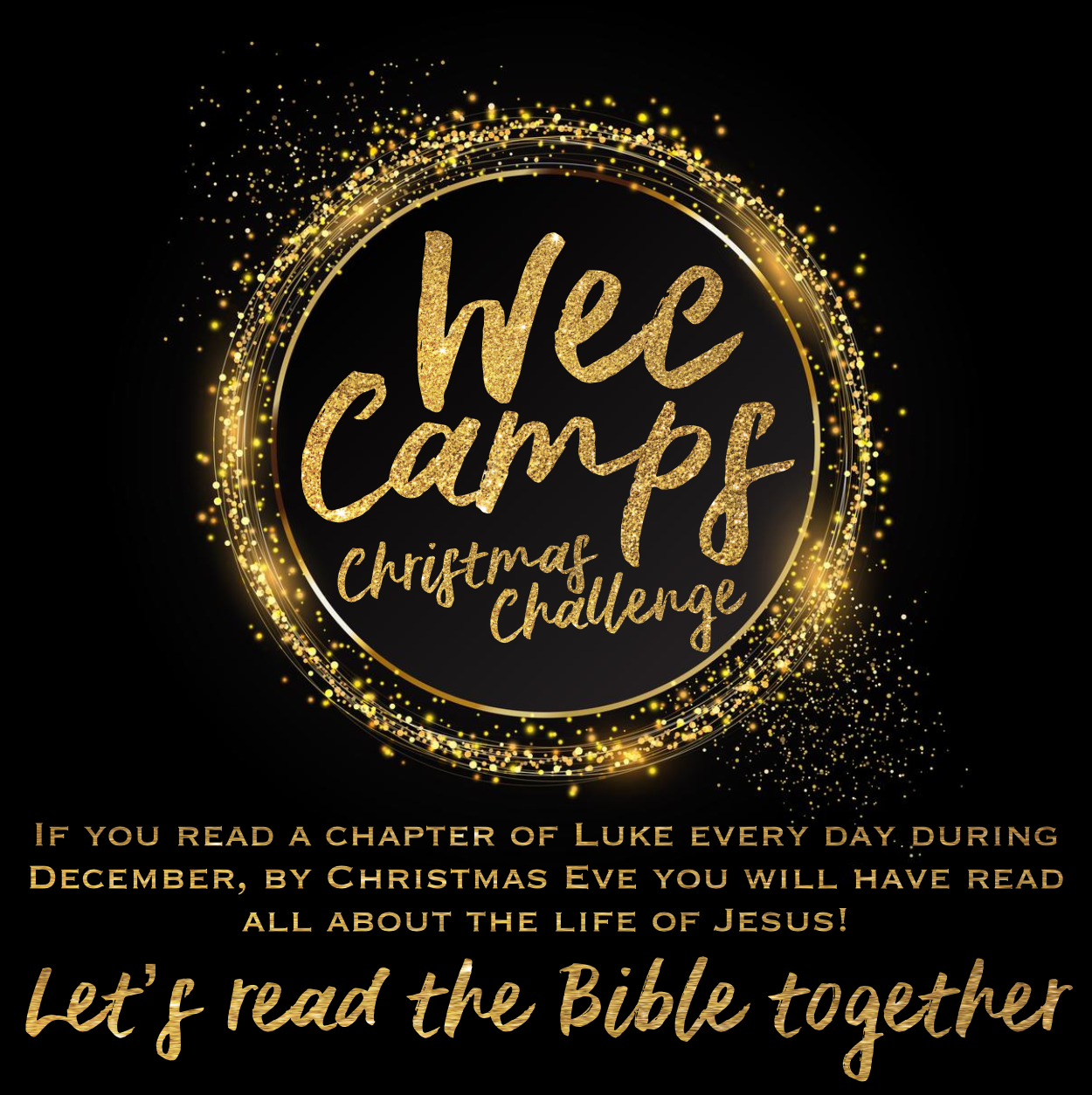 Posted on December 2, 2019December 4, 2019 by JonWEC Camps Christmas Challenge The WEC Camps Christmas Challenge is here! Let’s read the Bible together… If you read a chapter of Luke every day during December, by Christmas Eve you will have read all about the life of Jesus!